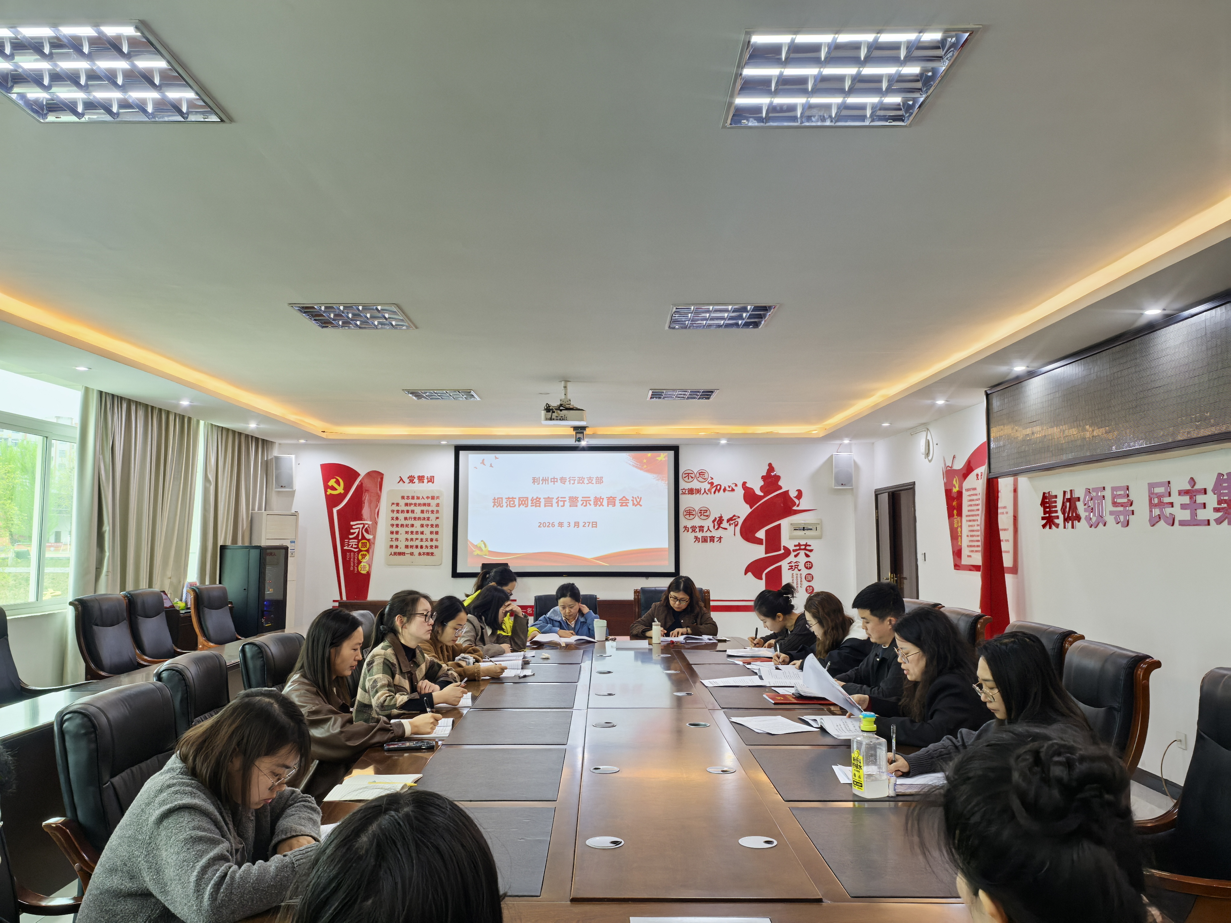 为进一步强化支部党员及教职工纪律意识、规矩意识,筑牢网络行为思想防线,坚决杜绝网络违纪违规行为发生,营造风清气正的网络空间与校园环境,3月27日,行政支部组织召开规范网络言行警示教育专题会议。支部全体党员、相关科室教职工参加会议,会议由支部书记熊新兵主持,挂联领导向珏参加会议。